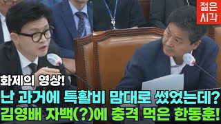 한동훈 "지난 정부 특활비 내역이랑 비교해보자!" 는 말에 당황한 민주당 김의겸!