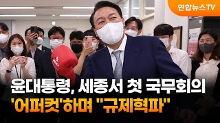 세종서 첫 국무회의…윤대통령 '어퍼컷'하며 "규제혁파" / 연합뉴스TV (YonhapnewsTV)